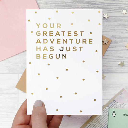 Bookishly - Gold Foil 'Greatest Adventure' Good Luck CardRegular price $5.50 USDRegular priceUnit price per-