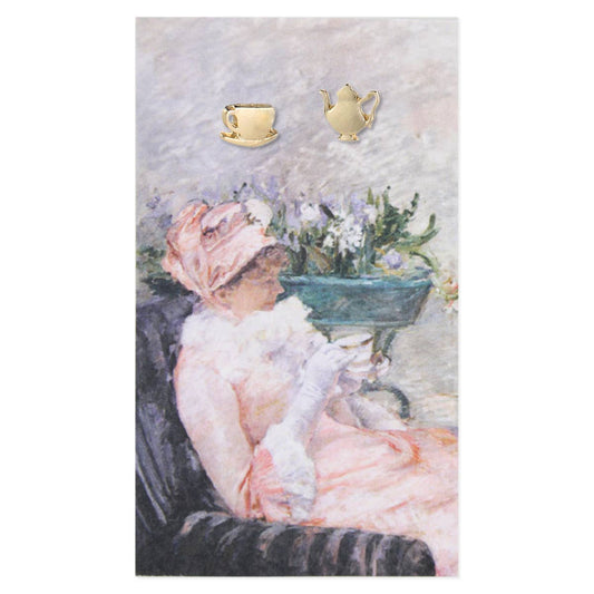 ZAD - Cup of Tea Fine Art Gold Post Earrings