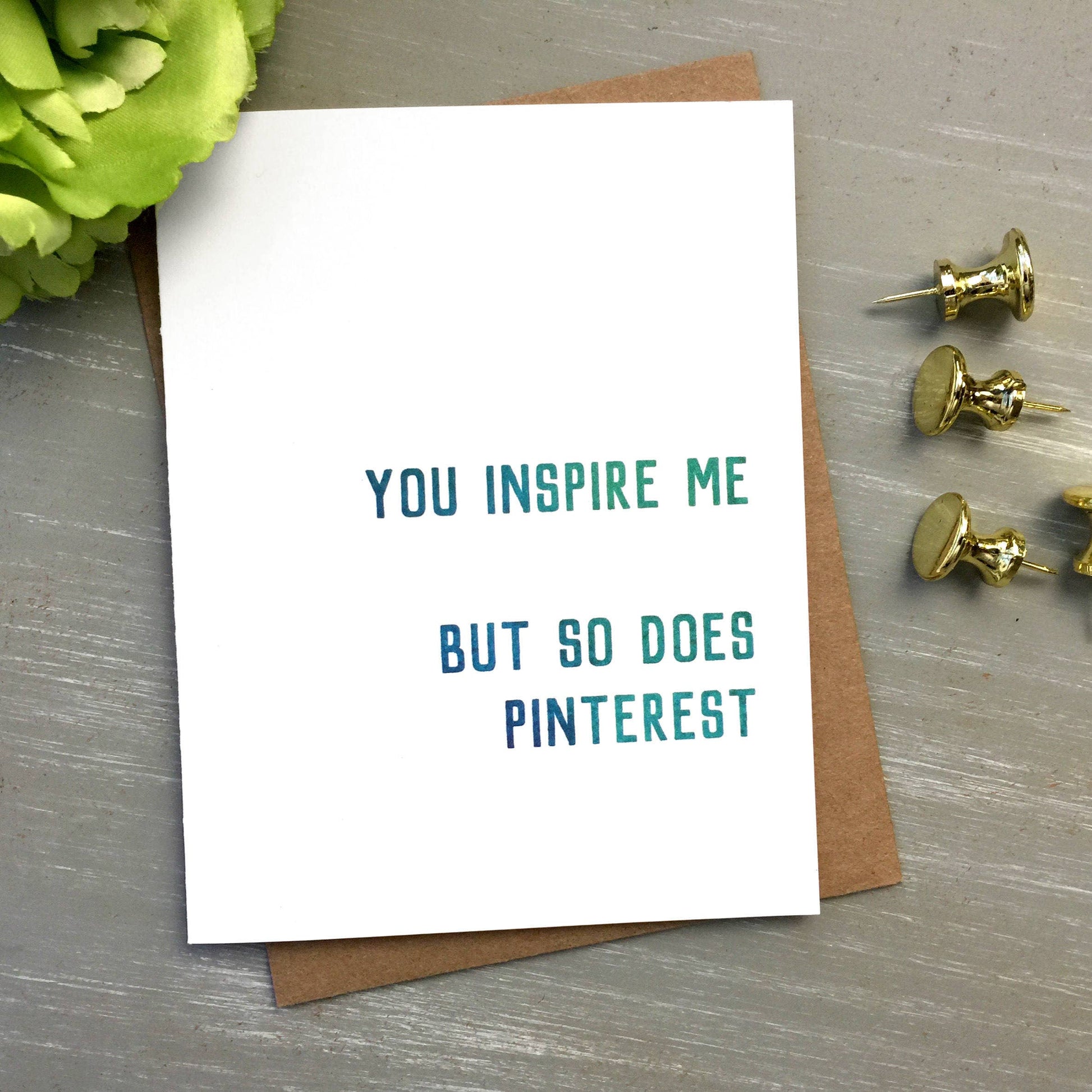 You Inspire Me, But So Does Pinterest; Sarcastic Card; Funny Quotes; Funny Phrases; Pinterest Lover; Inspiration