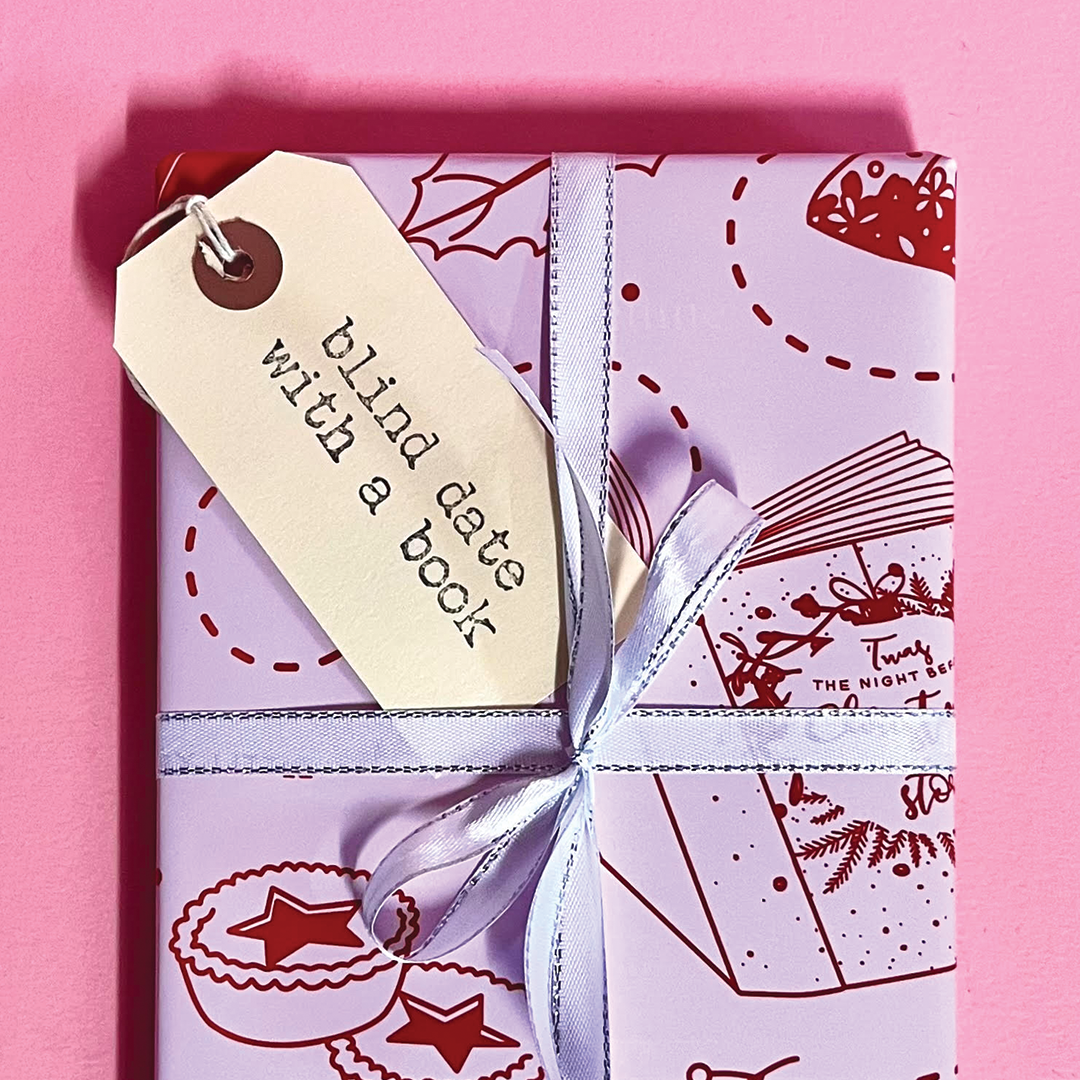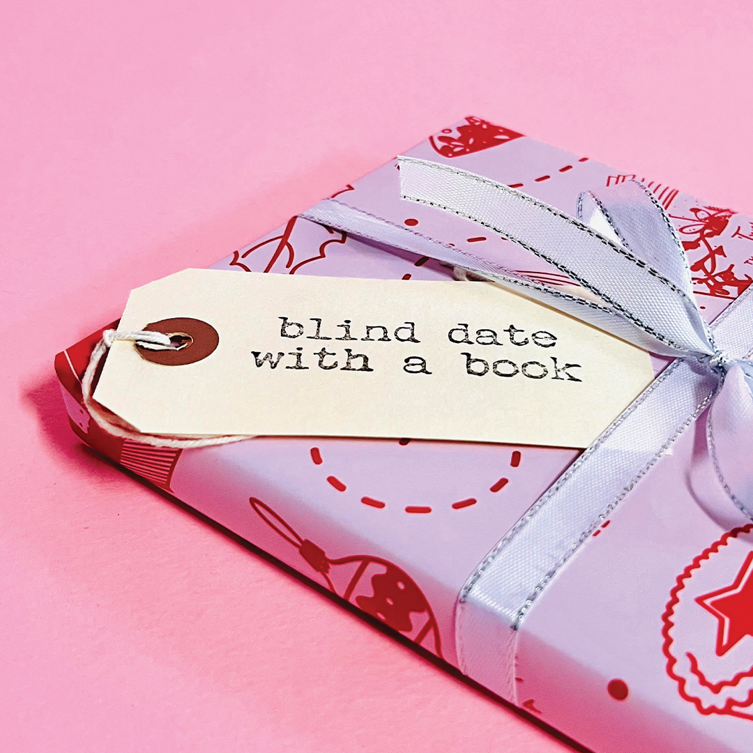 Once side is stamped with 'Blind date with a book' and the other side is blank for you to write little hints or messages to tease your customer.