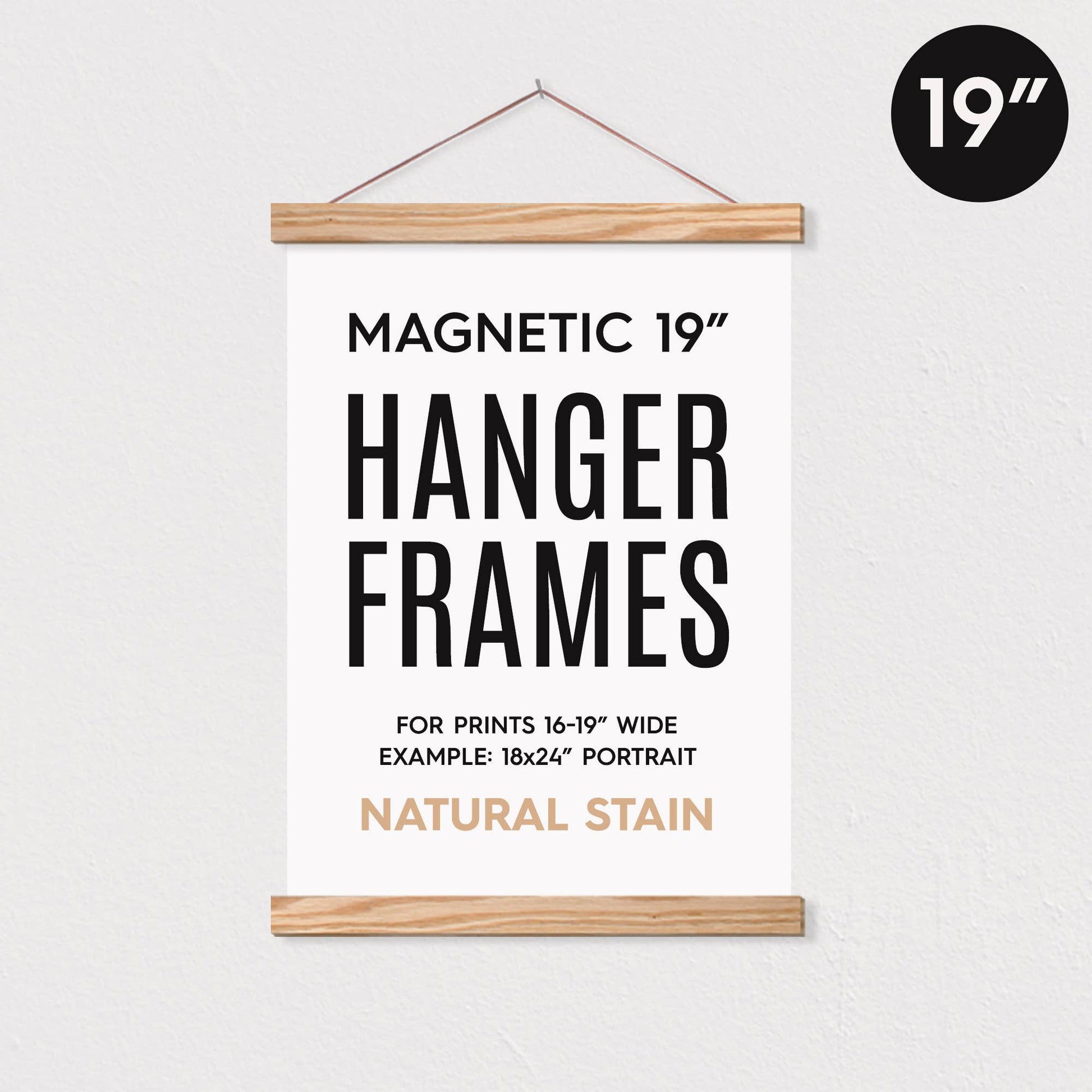 Hanger Frames - 19" MAGNETIC Poster Hanger Frame™ for 18x24" Portrait Prints: Natural Stain / Full retail packaging (poly bag & branded stickers)