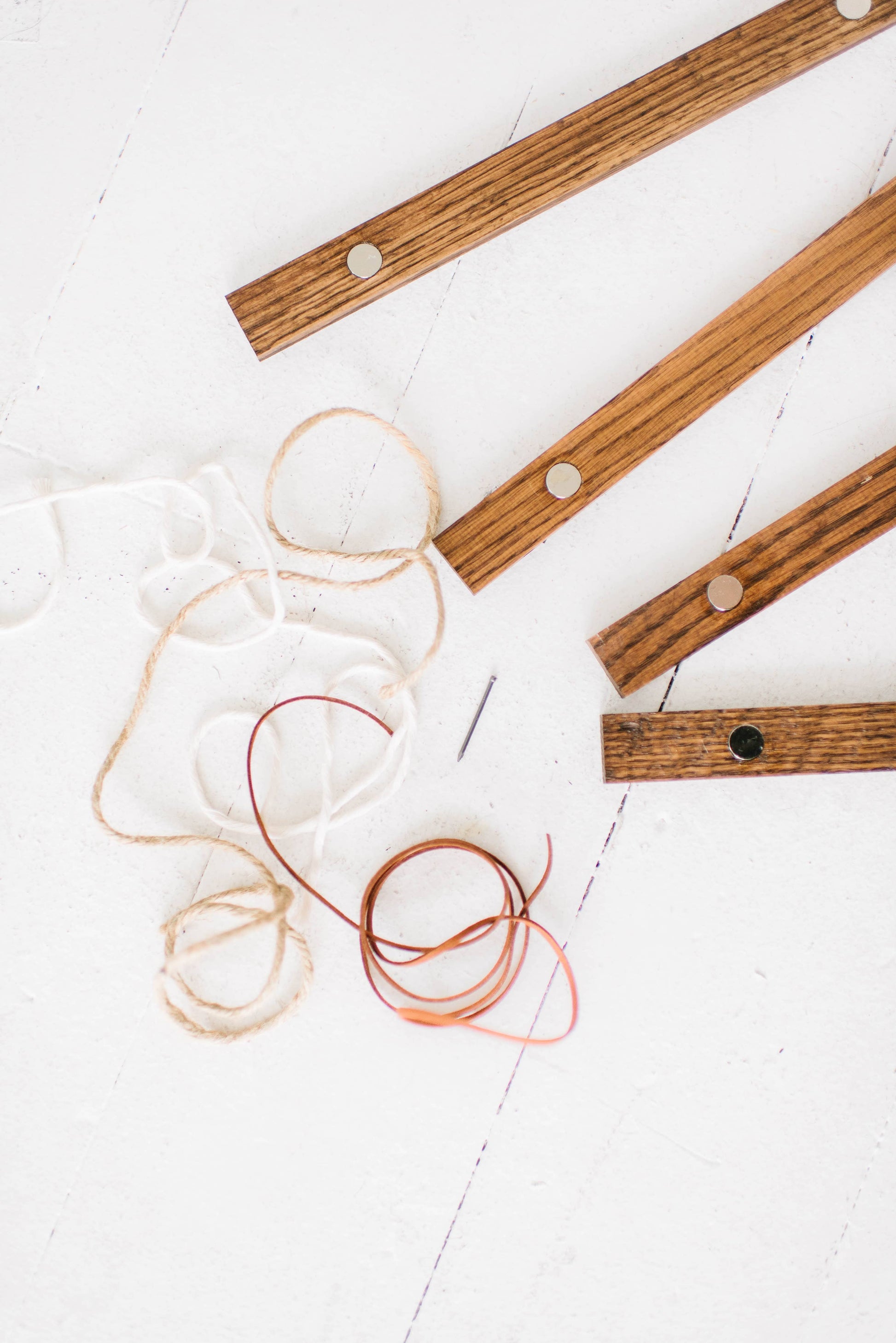 HANGER FRAMES™ are wooden magnetic poster hangers to frame art prints and posters. These are handcrafted in our studio from high-quality oak hardwood. Each set includes four sticks, two that clamp the top of the canvas and two that clamp the bottom. Each Hanger Frame package includes all three string options: faux leather cord, brown jute twine, and white cotton twine. Simple assembly required. Frame only, no print included.