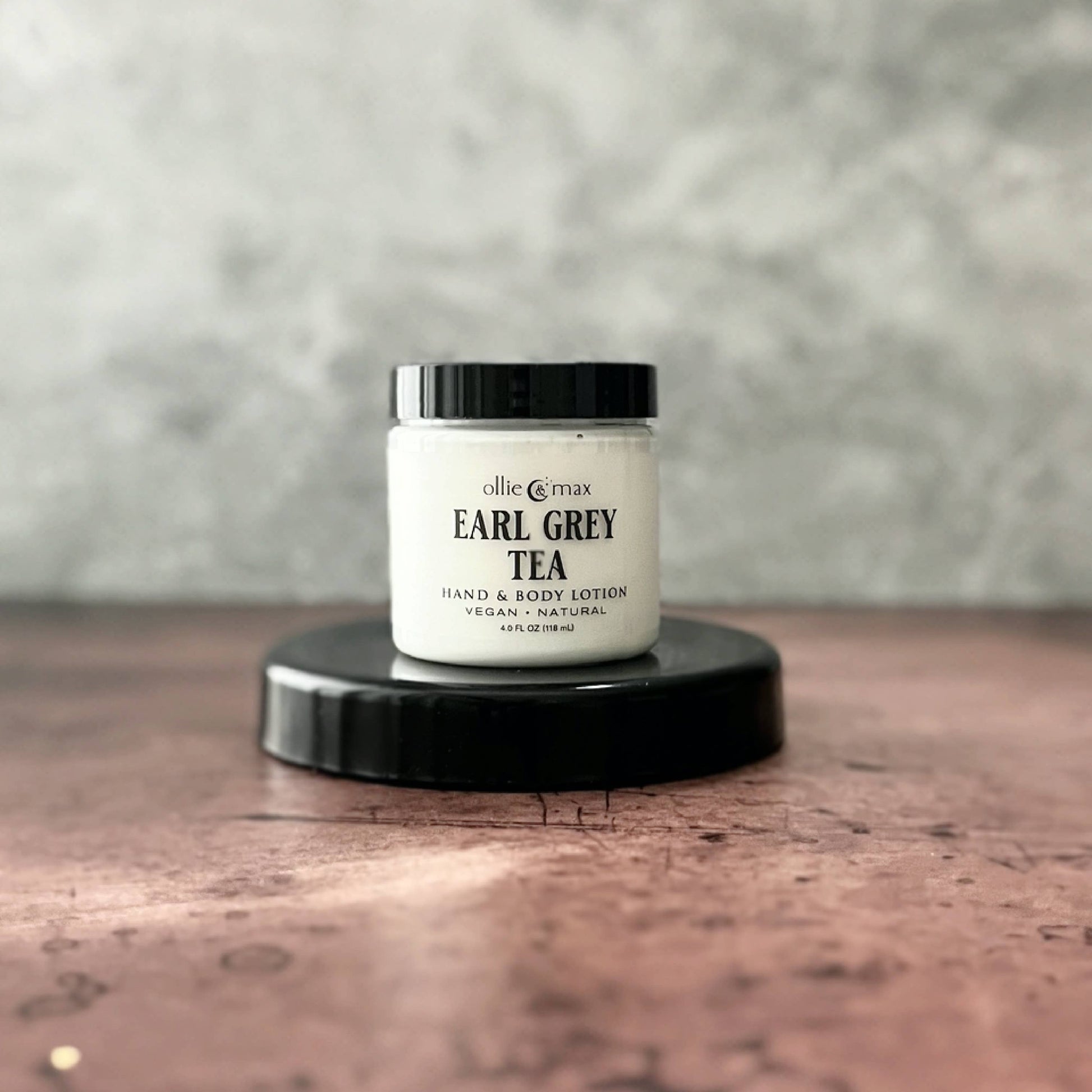 Earl grey - light notes of tea leaves and bergamot with a subtle herbal finish. This lotion is made with skin-loving oils and butters that will quench your skin’s thirst for moisture. High organic content and vegan ingredients create a lightweight lotion that provides long lasting relief for skin, without leaving it feeling greasy and heavy. Vegan and cruelty free. Ingredients: deionized water, caprylic/capric triglyceride, grape seed oil, avocado oil, sunflower seed oil, corn oil, coconut oil, jojoba seed oil, shea butter, aloe leaf juice, pumpkin seed oil, polyglyceryl-3 stearate, palm stearic acid, sodium stearoyl lactylate, propanediol (zemea), cetearyl alcohol, glycerine (vegetable), tocopherol (vitamin e), cucumber extract, elder flower, mallow extract, comfrey extract, xanthan gum, glyceryl caprylate, grapefruit seed extract, fragrance oil, essential oil. Size: 4oz PET jar