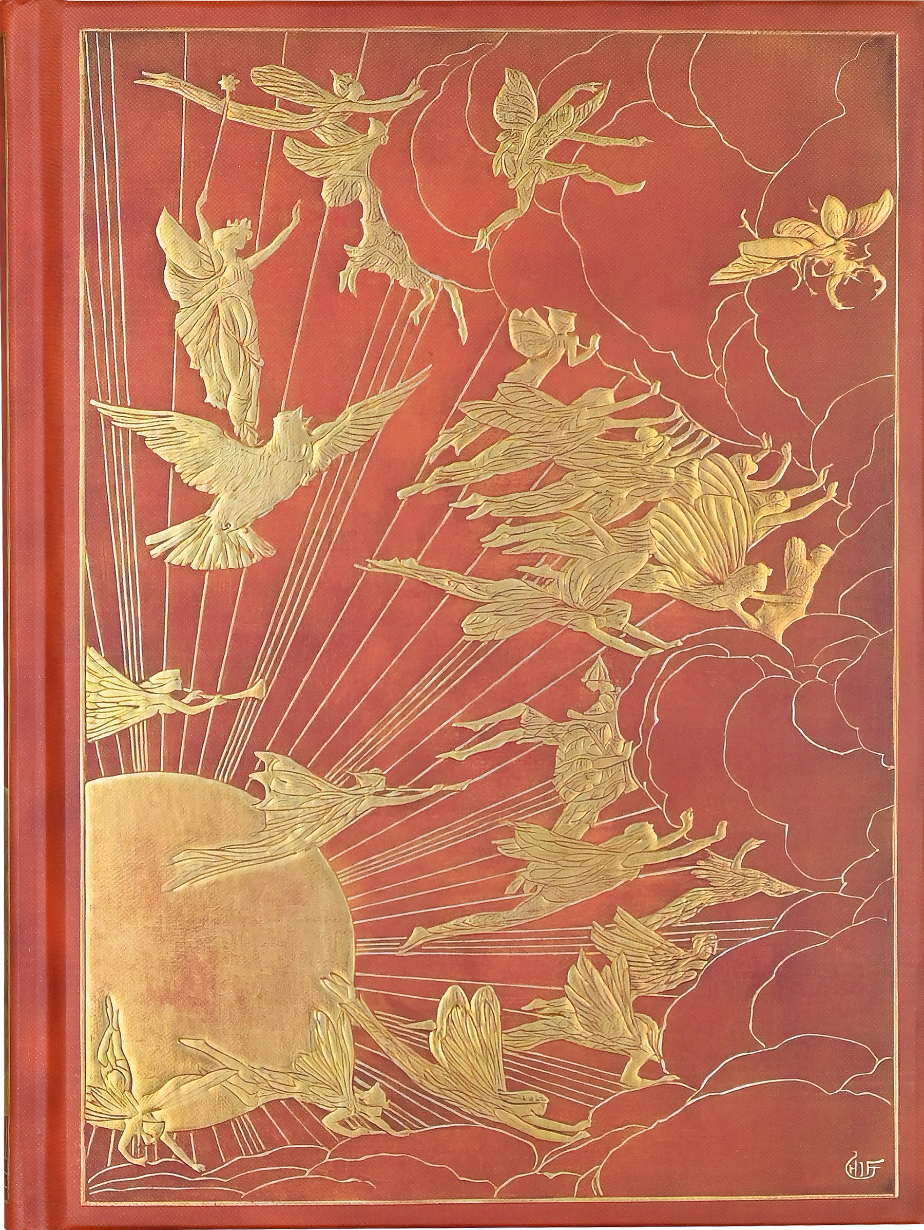 Fairy folk part the clouds and welcome the sun on the covers of this fabulous journal! Inspired by Andrew Lang's Orange Fairy Book , illustrated by Henry J. Ford and published in 1906, the design features intricate embossing and shimmering gold foil. Inside, 160 journaling pages await, whether for personal reflection, sketching, or for recording favorite quotations or poems. Premium 120 gsm paper is acid-free and of archival quality. Light gray lines gently guide your writing. The matching ribbon bookmark keeps your place. Gilded-gold edging catches the light as you turn each page. Complementary spine decorations and interior endsheets enhance the design. Hardcover binding ensures durability. Journal measures 6-1/4'' wide x 8-1/2'' high. A timeless keepsake in which your musings and creativity will find their home.